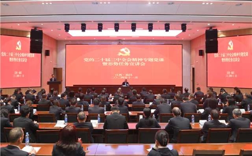 11月25日,,,,凭证国务院国资委党委和中国尊龙凯时党委事情安排,,,,江西水电公司党委举行了党的二十届三中全会精神专题党课暨形势使命宣讲会。。。。。。。 聚会以《周全贯彻党的二十届三中全会精神 推动公司高质量生长再上新台阶》为题,,,,周全系统地解读了党的二十届三中全会精神的主要意义、基本内容,,,,详细叙述了进一步周全深化刷新的重点使命和国资国企刷新内容,,,,指导公司党员、干部准确熟悉目今经济形势和公司面临的刷新生长形势使命,,,,并聚焦公司刷新生长重点提出推动高质量生长的思绪和偏向。。。。。。。 聚会指出,,,,公司正处在周全深化刷新的要害期,,,,推动转型升级的要害期,,,,面临新形势、新使命、新挑战,,,,既要看到短期波动的“形”,,,,更要看到恒久生长的“势”,,,,坚持战略定力,,,,增强生长信心,,,,锚定目的使命,,,,以越发强烈的责任继续,,,,砥砺前行,,,,抢抓机缘,,,,应对挑战,,,,一直拓宽生长新空间,,,,塑造新优势,,,,增添新动能。。。。。。。 聚会要求,,,,各单位要一连提升焦点竞争力,,,,强化战略使命,,,,全力抓好市场营销,,,,推动谋划稳步增添;;;;;;;要强化治理提升,,,,坚持立异驱动引领,,,,提高项目精益化治理水平,,,,着力提防化解危害,,,,提升生长效能效率;;;;;;;要纵深推进周全深化刷新,,,,做实做细任期制和左券化治理,,,,增强授放权治理事情,,,,增强生长活力动能;;;;;;;要坚持党建统领,,,,抓好项目党建事情,,,,增强支部品牌建设,,,,纵深推进周全从严治党,,,,一连赋能高质量生长。。。。。。。 聚会强调,,,,面临国资国企刷新使命,,,,江西水电党委使命庆幸,,,,重任在肩,,,,始终把学习好、贯彻好、落实好党的二十届三中全会精神作为重大政治使命,,,,发挥刷新精神,,,,落实刷新行动,,,,坚定不移做强做优做大国有企业,,,,一连推动公司高质量生长再上新台阶。。。。。。。 聚会设置主会场和视频分会场,,,,公司在昌向导班子成员、高管、副总师、高级职员、各职能部分认真人、二级单位党政主要认真人及部分党员代表加入,,,,共计150余人。。。。。。。 |